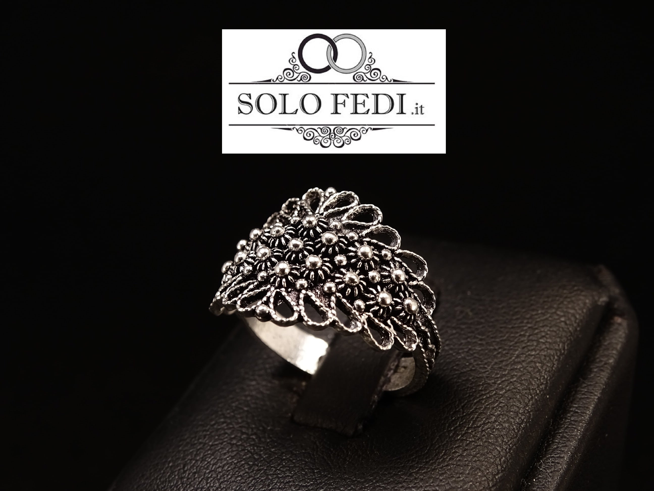 Anello ORIGINALE prodotto artigianalmente a mano in Sardegna con la classica lavorazione a filigrana e più file di pallini saldati.