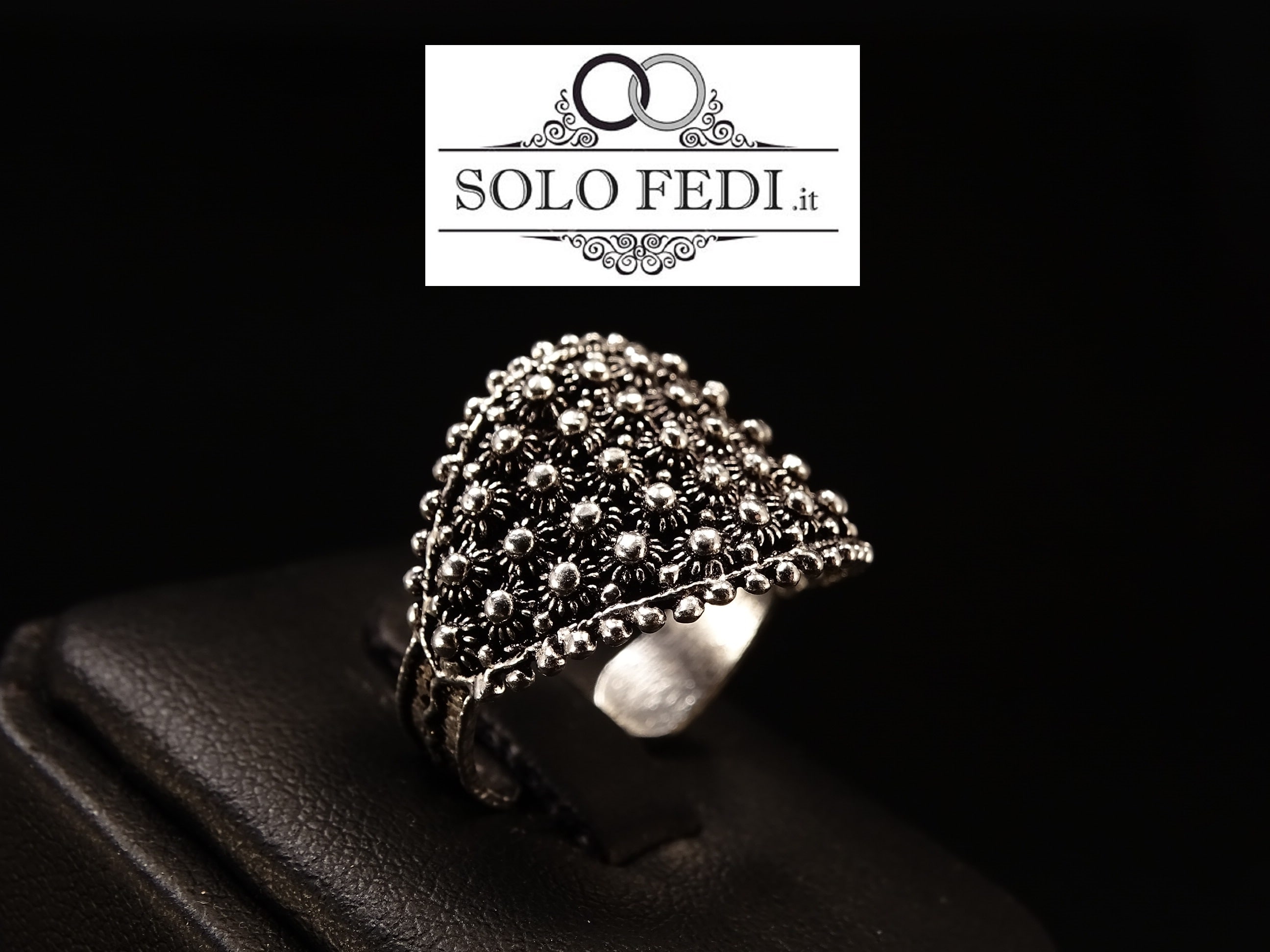 Anello ORIGINALE prodotto artigianalmente a mano in Sardegna con la classica lavorazione a filigrana e  file multiple di pallini saldati.